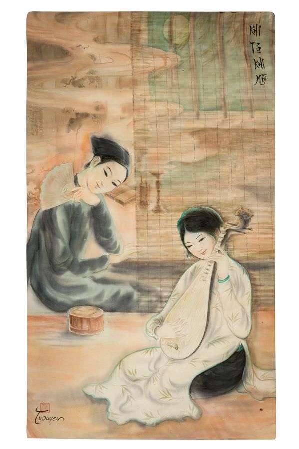 Encre et couleurs sur soie, signée en bas à gauche, annotée en haut à droite