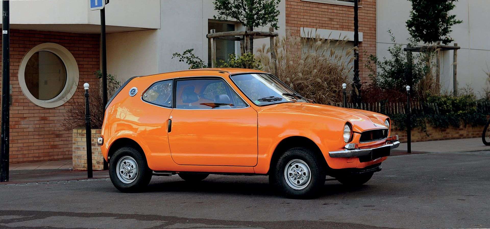 La Honda Z a été produite de 1970 à 1974 et a été commercialisée chez nous sous le nom de Z 600 en référence à la cylindrée de 598cm3. Son charme et son style très personnel, sa mécanique issue de la moto particulièrement vive en fait une voiture très sympathique. Le nuancier offrait une gamme de couleurs très « flashy » et bien dans le style de l’époque. Sa lunette arrière cernée de noir qui forme le hayon lui vaudra le surnom de « télévision ». Si sa diffusion resta limitée chez nous, le nom de Honda commençait à devenir populaire et des quotas furent instaurés à l’époque pour limiter une invasion de petites japonaises en France. Son moteur affiche un haut rendement et délivre sa puissance maximale à 9 000 tr/mn. L’équipement de série est très complet et bien au-delà de certains modèles de la catégorie supérieure. En milieu de carrière sur le marché japonais, la voiture reçoit une nouvelle plateforme et un moteur refroidi par eau hérités de la Honda Life. Honda était trop en avance sur son temps sur le marché japonais en proposant la Z coupé. La catégorie midget était encore très utilitaire au début des années 1970 et un coupé, aussi réussi soit-il, ne correspondait pas aux attentes de la clientèle. À l’exportation, le gabarit de la voiture est vraiment trop limité surtout en Amérique du Nord. En Europe, la Z coupé était une parfaite concurrente de la Mini mais Honda disposait d’un réseau réduit pour que les ventes puissent réellement décoller. Cette rare petite Honda vendue neuve en France est aujourd’hui en bon état général. Le propriétaire actuel en fait l’acquisition en 2015 et l’entretien sera toujours fait avec soin depuis lors. La peinture fut refaite il y a quelques années, l’intérieur est d’origine et sans usure notable. Le moteur 600 fonctionne à merveille et dernièrement une ligne d’échappement sur-mesure en inox a été montée. Les freins avant sont neufs et cette petite auto originale et attachante est prête à prendre la route. Avec sa taille et sa couleur flamboyante celle-ci offre une belle alternative aux Fiat 500 et Mini bien souvent surcotées et moins rares. À collectionner d’urgence.