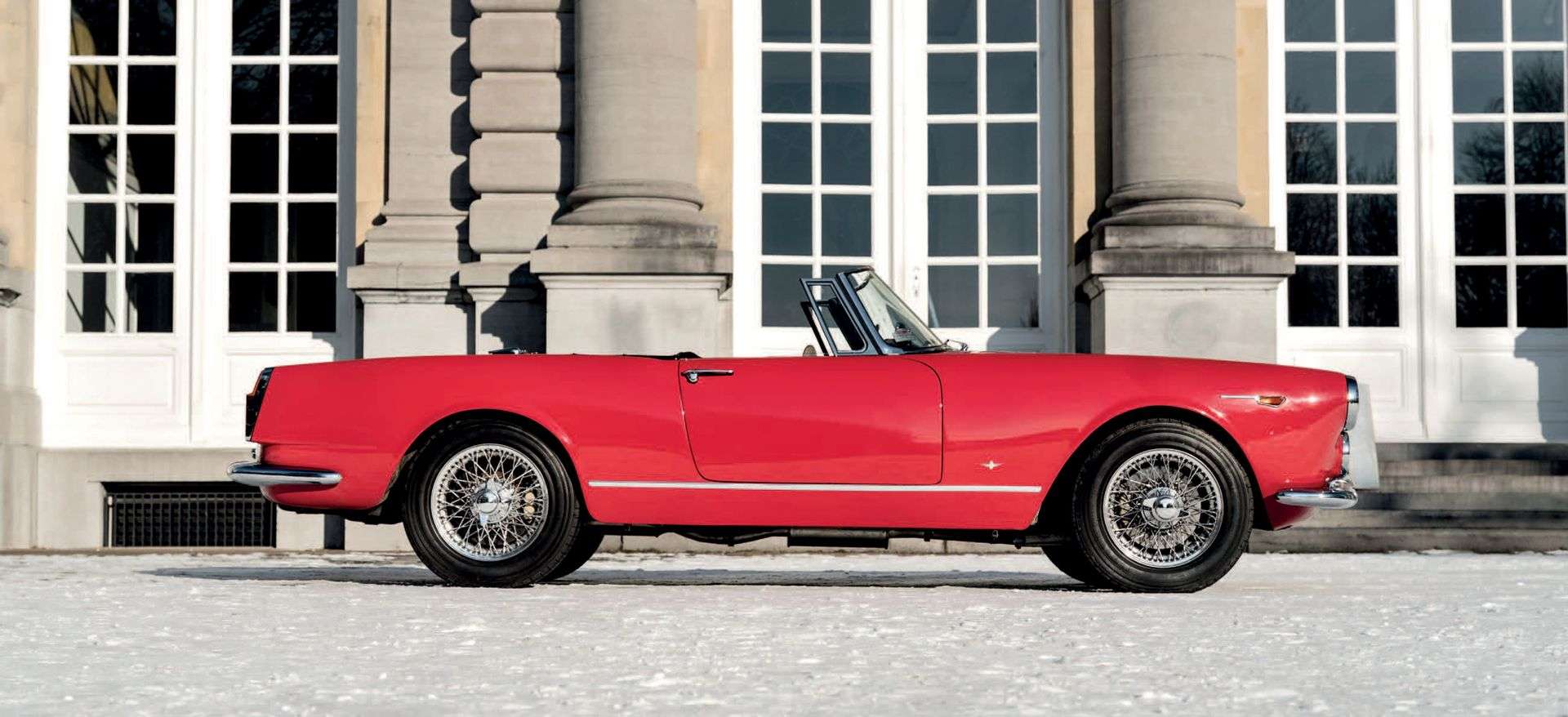 Véritable vaisseau amiral de la marque Alfa Romeo, la 2600 était déclinée dès 1962 en coupé et en cabriolet. Modèle de grand luxe doté de quatre vraies places et habillé par le carrossier Touring, c’est une voiture élégante et performante dont la production totale se limitera à seulement 2 255 exemplaires compte tenu de son prix de vente élevé pour l’époque. Si le châssis est une évolution de la série précédente à moteur 2.0l (Tipo 102), la Tipo 106 bénéficie de quelques retouches et améliorations, mais le plus important se trouve sous son capot avant avec l’arrivée du nouveau six-cylindre double arbre de 2 584 cm3 développant 145 ch. La 2600 Spider devient une voiture de grand standing avec des lignes tendues, une belle habitabilité et des performances de premier plan lui permettant alors de rivaliser avec les voitures les plus prestigieuses de sa catégorie. Longtemps dans l’ombre du Spider 1600 (Tipo 101) ce modèle est depuis quelques années recherché pour ses grandes qualités routières et sa rareté. Selon le certificat délivré par le Museo Storico Alfa Romeo, le modèle que nous présentons fut produit le 7 avril 1964 et livré à Rome le 7 mars 1966 au garage Raganelli. Quelques temps plus tard, la voiture sera expédiée au consulat d’Italie de New York avant qu’un certain David Switzer résident à Hollywood en prenne possession. On retrouve d’ailleurs notre voiture sur le 2600 Register au nom de ce dernier en mars 1986 et ce jusqu’en avril 2005. En 2006, la voiture est de retour en Europe et sera intégralement restaurée par les sociétés OKP Engineering à Munich et Alfa Classic Center à Dortmund. Un descriptif très précis retrace chaque étape de la restauration avec un dossier photo important. La voiture partira ensuite en Angleterre en 2007 pendant 3 ans avant de rejoindre Saint-Rémy-de-Provence en 2010. C’est là que le propriétaire actuel en prendra possession il y a deux ans. Comptabilisant 26 450 km au compteur depuis sa restauration, l’état de cette voiture est irréprochable. La qualité de la peinture, la régularité des alignements, la beauté de l’habitacle sont stupéfiant tout comme son comportement. Après avoir parcouru une dizaine de kilomètres à son volant dans les environs de Bruxelles, nous avons apprécié le couple de son moteur, la précision de sa boite de vitesse mais surtout la qualité de ses trains roulants. Parfaitement réglée, la voiture est un régal de précision et son freinage s’est montré très efficace grâce à ses 4 freins à disque. Montée sur de magnifiques roues à rayons Dunlop et équipée de pneus Michelin (5.50 R16), notre exemplaire est vendu avec son manuel d’entretien et d’utilisation, les deux catalogues de l’usine répertoriant les pièces, éléments de carrosserie, mécanique et électrique spécifiques à la 2600, la brochure de vente de l’époque et bien sûr son dossier de restauration. C’est un véritable coup de cœur que nous avons eu pour cette auto qui, nous devons l’admettre, est présentée à une estimation extrêmement attractive compte tenu de ses nombreuses qualités.