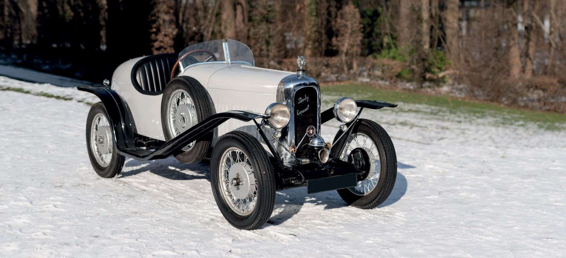 La société des automobiles Derby fut fondée en 1921 à Courbevoie par l’ingénieur Bertrand Montet. Afin de reconvertir son usine consacrée pendant la guerre à la production de matériel militaire, il entreprit la construction de voiturettes susceptibles d’entrer dans la catégorie fiscale des cyclecars en utilisant des moteur Harley-Davidson en provenance de surplus américains. Mais la rusticité du bicylindre ne pouvait satisfaire une clientèle de plus en plus exigeante et dès 1922, la Derby reçut un moteur Chapuis Dornier puis Scap ou Ruby pour une production totale ne dépassant pas les 300 exemplaires. Le modèle que nous présentons a une histoire singulière car il fut exposé pendant de nombreuses années dans la collection de Ricardo Manuel Barosa Saragga, au Portugal. Résolument sportif, ce « cul pointu » est équipé du moteur Chapuis Dornier de 1 093 cm3 de cylindrée réputé pour sa remarquable robustesse et sa fiabilité. Pour mémoire, ces moteurs équipaient également le cyclecar Sénéchal qui remporta trois fois consécutivement le Bol d’or en 1924, 1925 et 1926 ! En très bel état de présentation, sa carrosserie est un deux places décalées qui compense l’étroitesse du cockpit. Doté d’ailes étroites et d’une garde au sol assez haute, l’ensemble est très élégant et se rapproche de la silhouette d’une Amilcar CGS, bien plus exclusif par son prix sur le marché aujourd’hui. Depuis son acquisition en septembre 2019, un peu plus de 20 000 € ont été investis pour sa remise en route avec de nouveaux tambours et de nouvelles garnitures de freins, le remplacement des rayons de roues, un couvre tonneau sur mesure et l’adaptation du siège conducteur pour une meilleure accessibilité. Une révision du faisceau électrique, la fabrication d’un cale-pieds et un nouveau tableau de bord conforme à l’original avec ses instruments AT ont redonné vie à cette voiture attachante. Proche de l’état « concours », ce Derby est le cyclecar idéal pour rejoindre le Vintage Revival de Montlhéry ou le Trophée Jacques Potherat avec une voiture peu courante et bénéficiant d’un passé sportif intéressant. La voiture est accompagnée des certificats d’authenticité du Clube Português de automoveis Antigos et de celui du Musée de Caramulo, établissement reconnu d’utilité publique.