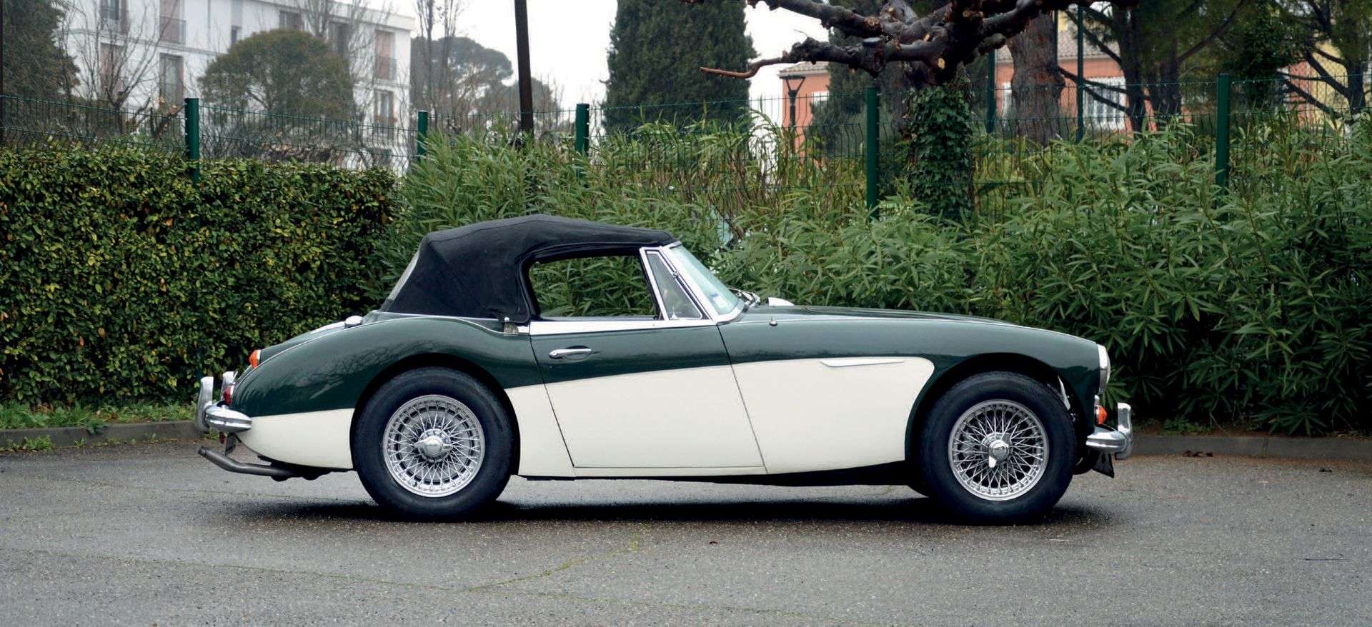L’exemplaire que nous proposons à la vente est une Austin Healey 3000 Mk3 BJ8 de 1966. De provenance américaine, cette auto est arrivée en Europe en 1990. Elle a été entièrement restaurée par son ancien propriétaire au début des années 90. Les travaux sont d’ailleurs documentés dans un important dossier fourni avec la voiture. Son actuel propriétaire en fait l’acquisition en 2005, il lui a apporté un soin tout particulier en lui prodiguant un entretien rigoureux jusqu’à aujourd’hui. Racée et élégante dans un ensemble d’une grande homogénéité, elle est dotée d’une belle livrée bicolore vert anglais et crème associée à un intérieur en simili noir. Elle possède une capote en alpaga qui a été remplacée en 2005. Ses chromes et ses jantes en très bon état possèdent toujours un bel éclat. La voiture se trouve aujourd’hui dans un bon état de conservation, sa mécanique démarre au quart de tour et son essai routier nous a donné entière satisfaction. Version la plus moderne de la « Big Healey », cette BJ8 très bien entretenue représente une belle occasion de s’offrir la dernière évolution du mythique roadster anglais.