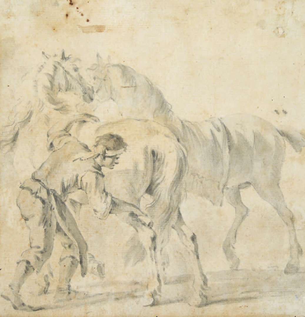 Personnage pansant ses chevaux