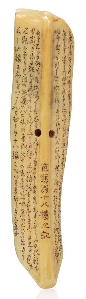 象牙雕树干形山水纹臂搁与一件蕉叶形山水题诗
