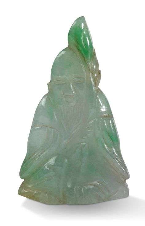 Pendentif en jadéite représentant Zhoulao tenant une branche fleurie.