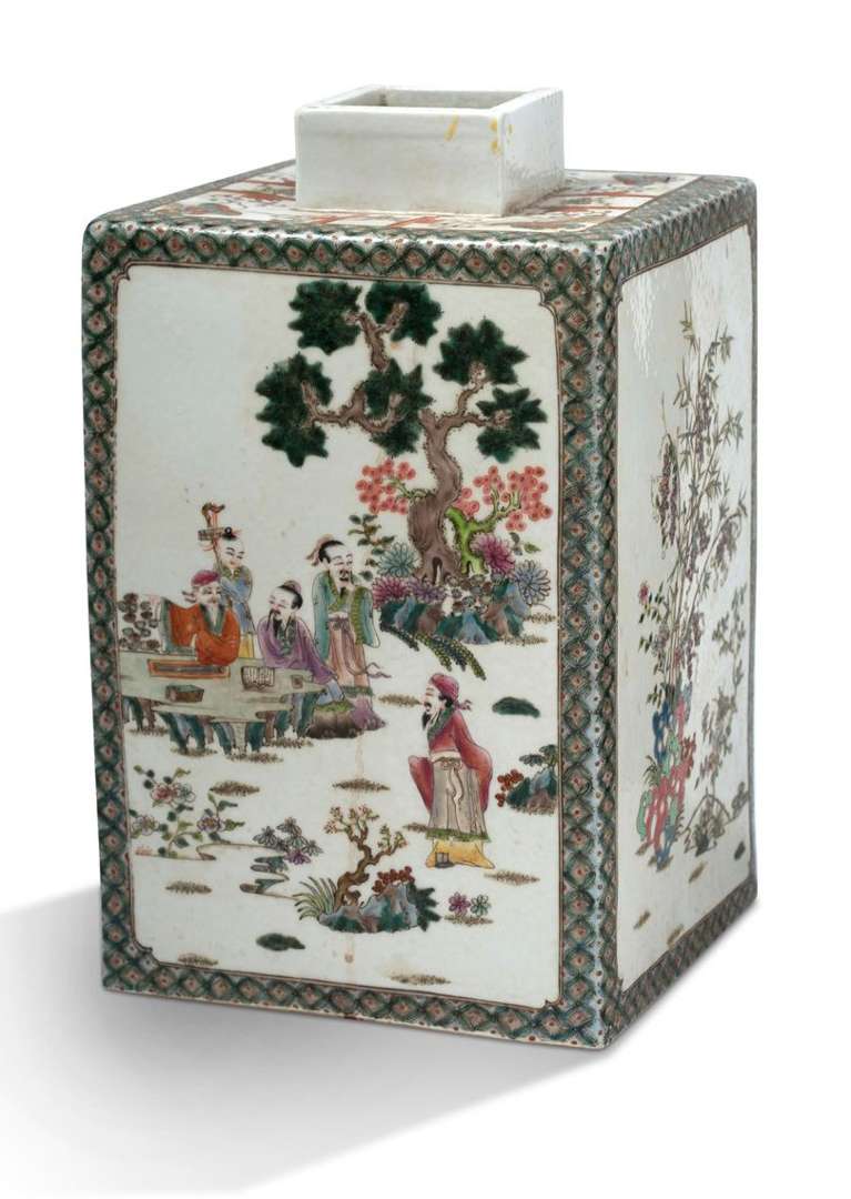 粉彩婴戏图方罐 (缺盖,轻微磨损)