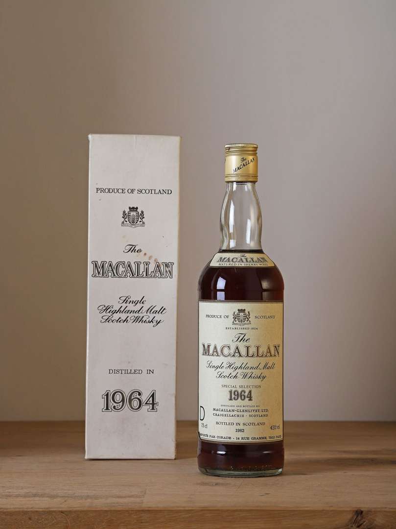 1 B WHISKY SINGLE HIGHLAND MALT SPECIAL SELECTION 18 ANS D'ÂGE 75 Cl 43% (étui) (mise en bouteille en 1982) importateur Corade - 1964 - Macallan Glenlivet