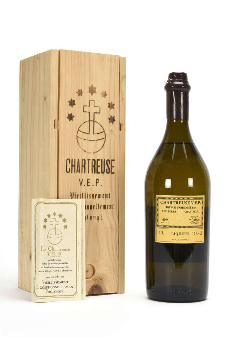 1 B CHARTREUSE JAUNE V.E.P. 100 Cl 42% (Caisse Bois d'origine) (mise en 20