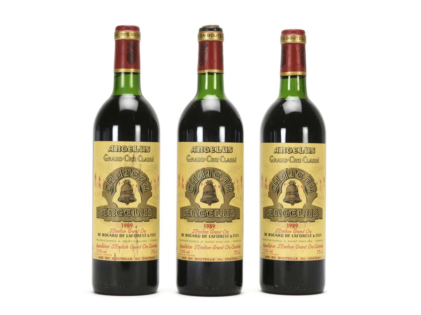 3 B CHÂTEAU ANGÉLUS (2 T.LB.+| 1 T.L.B| e.l.s| 1 capsule absente au sommet) - 1989 - GCC1A Saint-Emilion