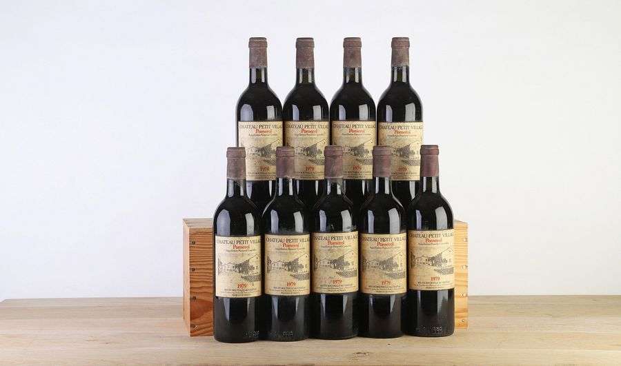 9 B CHÂTEAU PETIT VILLAGE (1 B.G| 1 H.E.+| e.t.h| c.s| 3 bas de capsules plissées) - 1979 - Pomerol