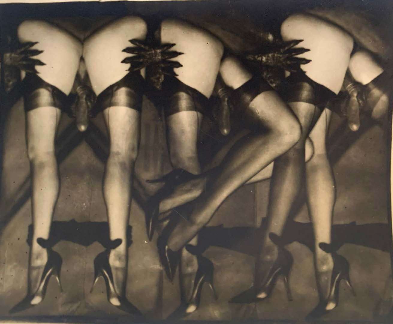 Tirage photographique. Sur verso, annotations tapuscrites «P. Molinier : Photo-Montage : pour «Le Chaman et ses Créatures» Texte de Roland Villeneuve | Cachet «Atelier du Grenier St-Pierre - Bordeaux - MDV et DS».