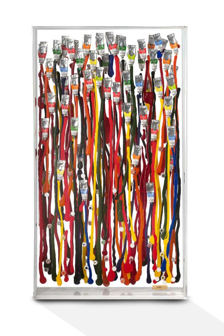 Tubes de peinture et plexiglass, signé et numéroté IV/XXX en bas à droite