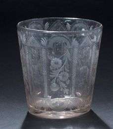 Gobelet en verre taillé et gravé à la roue de fleurs et de miroirs.