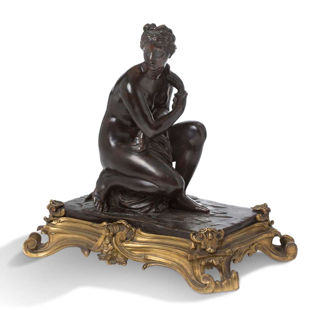 Ce bronze représentant Vénus accroupie s'inspire du marbre réalisé par Antoine Coysevox en 1686 pour l'escalier du parterre nord du parc du château de Versailles d'après le célèbre modèle antique conservé à Florence au Palais des Offices.