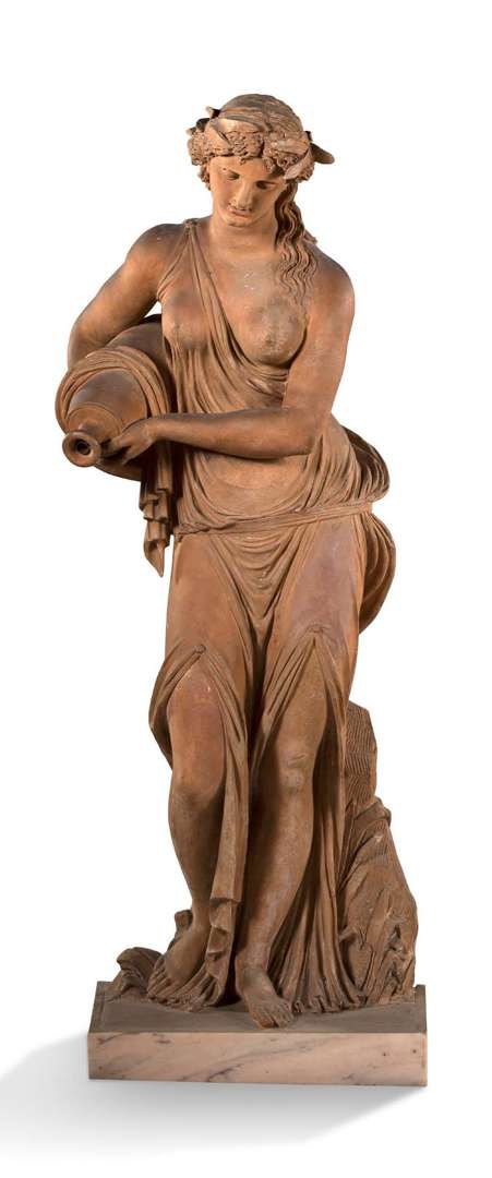 Le sujet de ce plâtre patiné, une nymphe portant une cruche d'où s'écoule de l'eau et symbolisant la source, se développe durant le XVIIe siècle pour atteindre un vif succès tout au long du XIXe siècle. Le traitement du drapé, des attaches aux cuisses et aux épaules, le travail de la chevelure font écho aux figures féminines de Clodion. Outre l'aspect séduisant de ces figures féminines rendu notamment par le jeu de modelage que permettent leurs « drapés mouillés » la profusion de ce type de sujets s'inscrit dans un contexte particulier qui est celui de la création de nombreuses fontaines dans l'espace urbain au XIXe siècle.