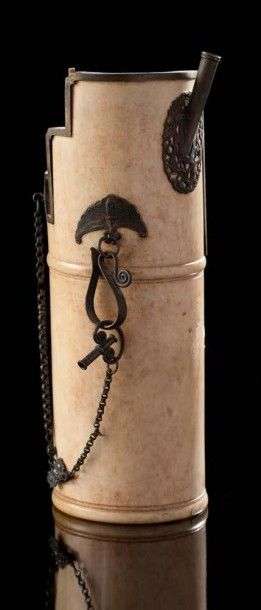 Nécessaire à pipe à fût cylindrique en ivoire tourné et laiton. vers 1900-1920 Haut.: 21 cm