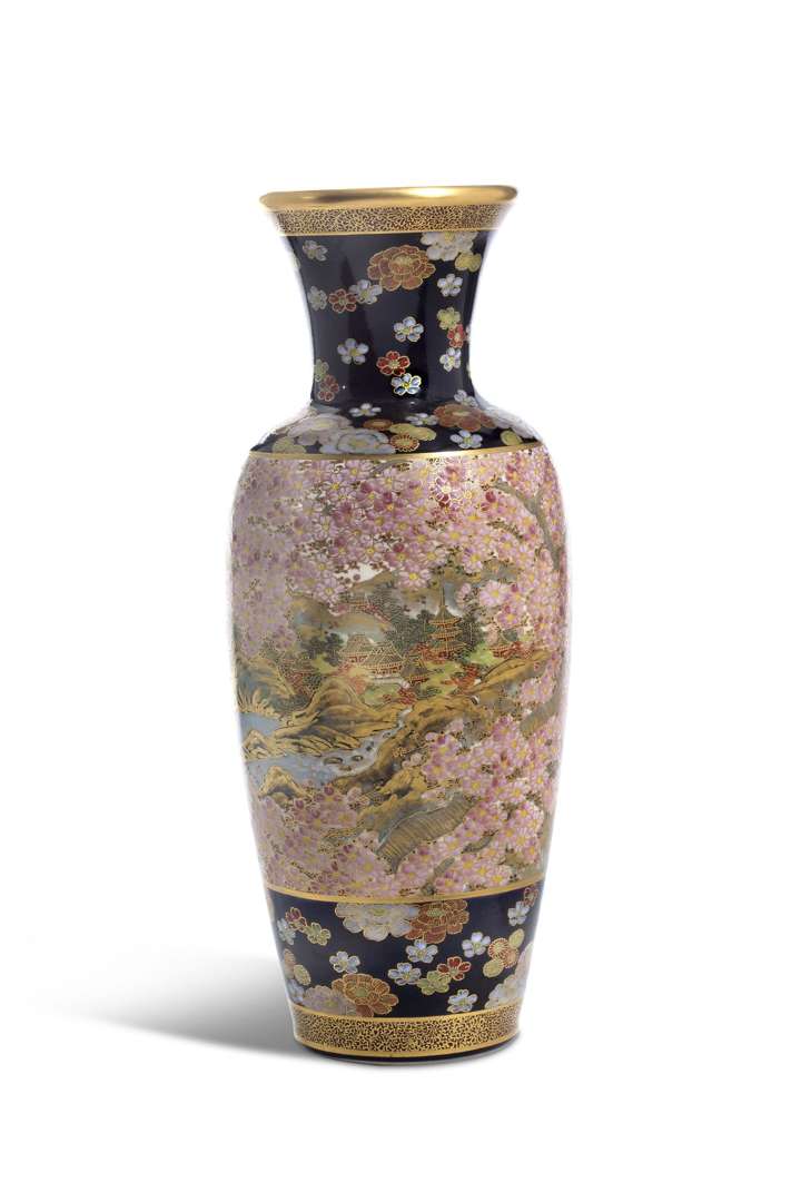Vase balustre en porcelaine satsuma à décor de cerisiers en fleurs.