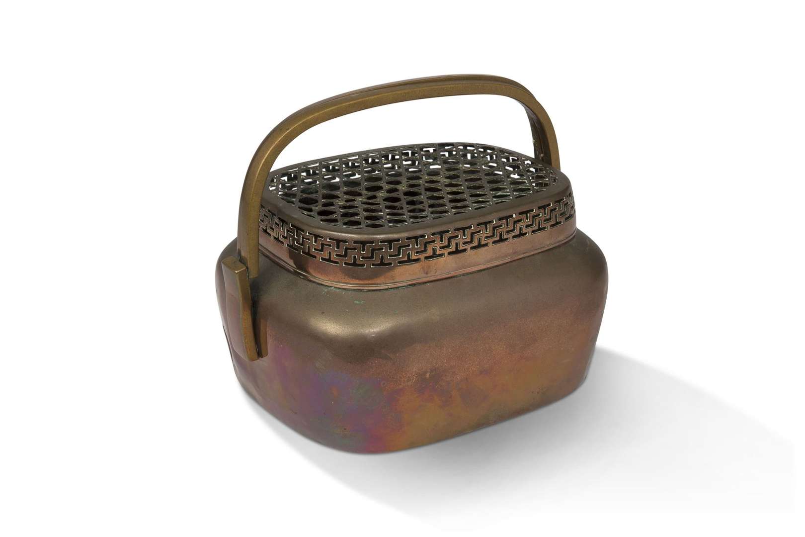 Brûle-parfum couvert en cuivre avec deux anses, à couvercle à décor ajouré