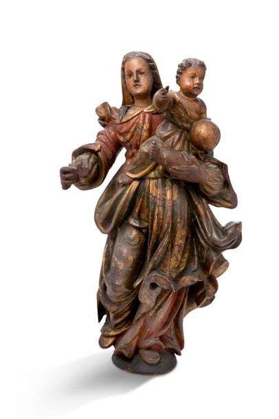 Vierge à l'Enfant en bois polychrome