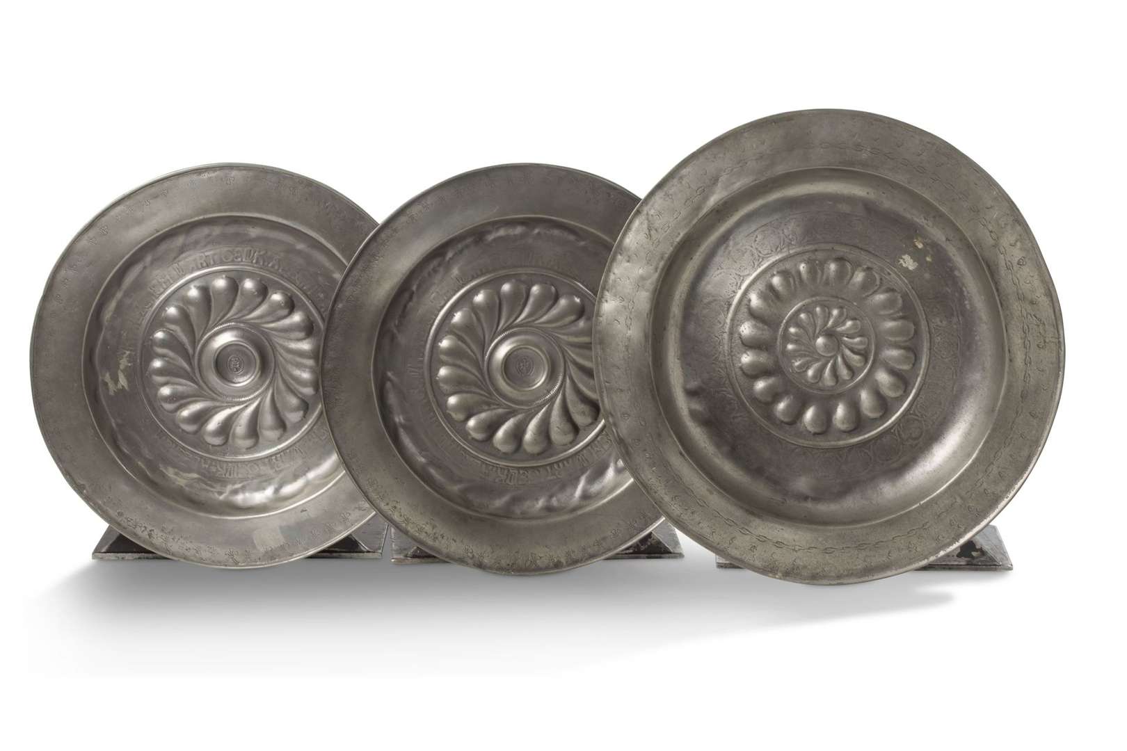 en étain à décor repoussé et gravé. Ombilic ceint d'une frise de godrons spiralés.