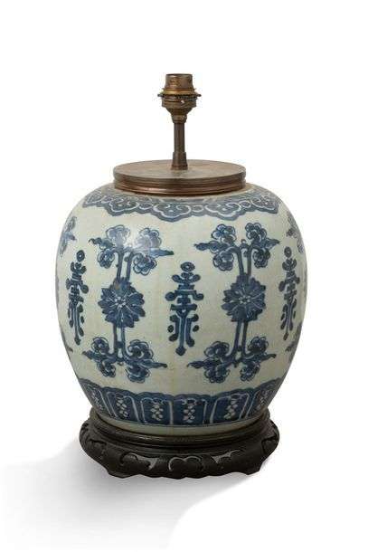 VASE MONTÉ en lampe en porcelaine bleu blanc de Chine Probablement XVIIIe siècle