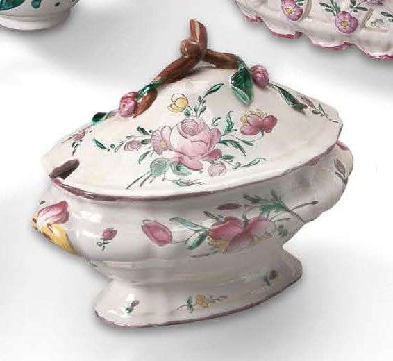 Couvert décoré en polychromie de bouquets de fleurs