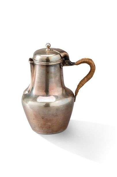 Laitière en argent à manche gainé de rotin