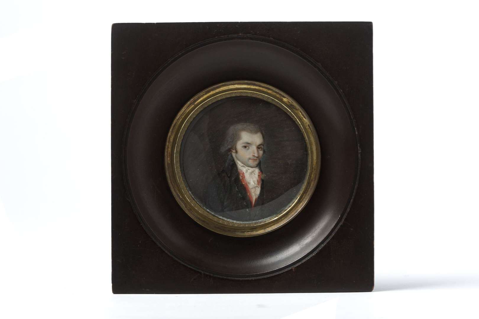 Miniature sur ivoire de forme ronde, conservée dans un encadrement en bois noirci