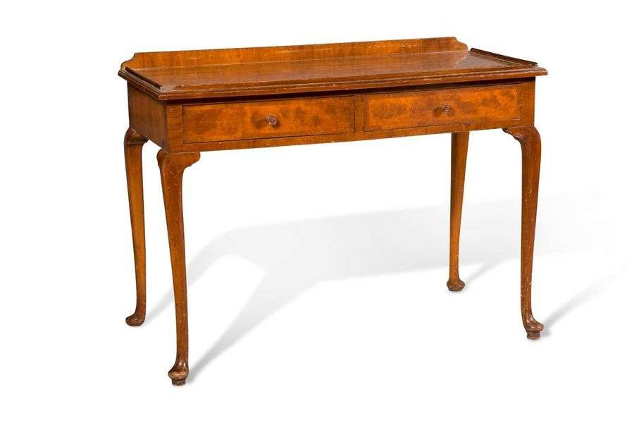 Bureau plat ouvrant par deux tiroirs en ceinture surmontés d'un plateau en bois à ressaut.
