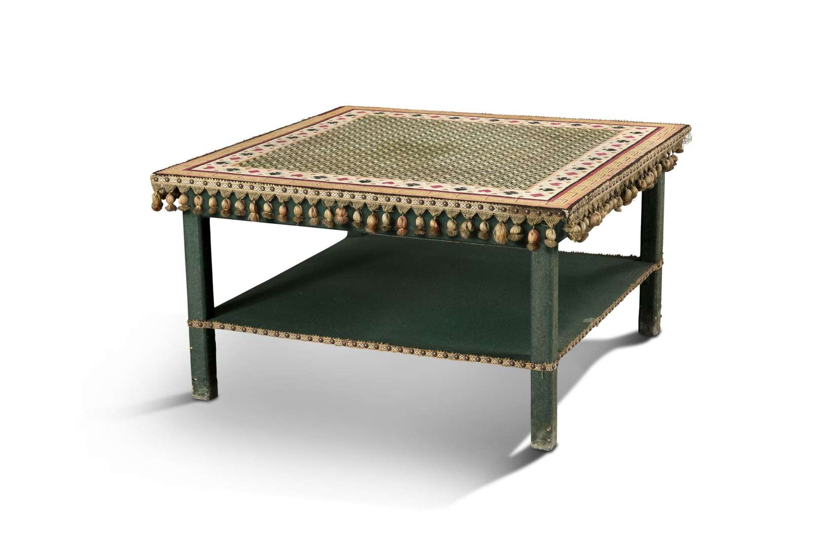 de forme carrée reposant sur quatre pieds réunis par une tablette d'entretoise. ~