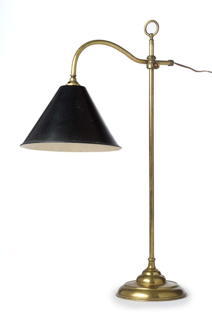 en laiton doré et abat-jour en tôle laquée vert amovible
