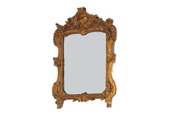 en bois sculpté et doré de forme mouvementée sur fond laqué vert~
