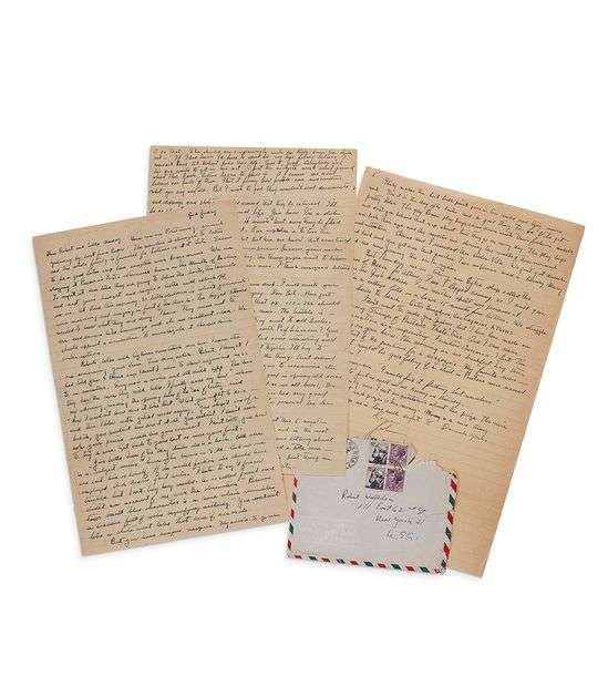 STEINBECK John (1902-1968). L.A.S. « John », [Salerno] « Good Friday » [Vendredi Saint 20 avril 1962], à Robert WALLSTON à New York | 5 pages in-fol à l’encre sur papier jonquille réglé, enveloppe | en anglais.