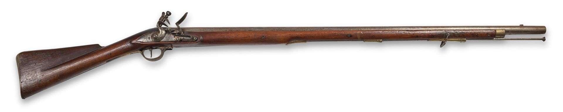 Platine à silex «Wheeler», chien à col de signe, canon rond fabriqué à Birmingham, toutes garnitures en laiton, crosse en noyer, baguette type clou. Angleterre fin du XVIIIe, début XIXe siècle 140 cm (Petits accidents)