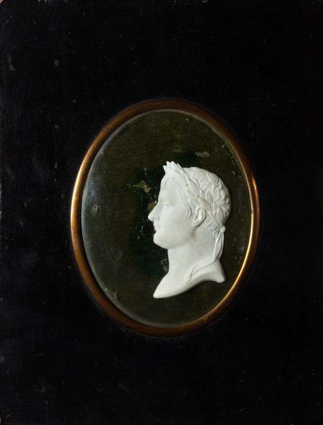 Profil en biscuit sur velours vert sous verre bombé dans un cadre en bois noirci rectangulaire. Mention manuscrite au dos «Donné par Napoléon le Grand à Yvan son médecin, à Ste Hélène. Transmis à M. l'abbé Louvot, à Paris par MME veuve Yvan. Légué à M. l'abbé Pillot, en 1883 par M. Louvot chan bre». Un ajout manuscrit «Acheté à la vente au près de l'abbé Pelot, le 10 mai 1891. M Gersone Zablein». Présence d'un cachet à l'encre, illisible, ancienne étiquette de collection n°73.