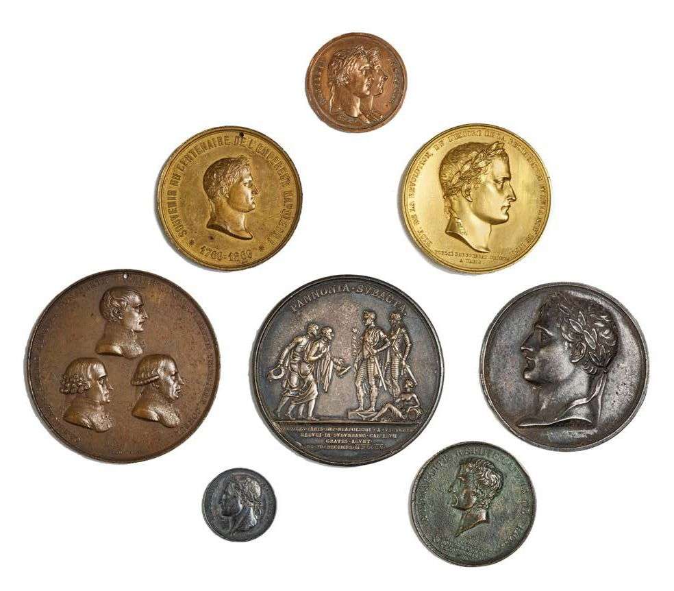 On y joint une médaille pour le centenaire de l'Empereur Napoléon 1769-1869, 5 cm de diamètre.