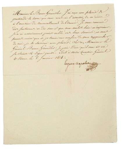L.S., Q.G. de Vérone 8 janvier 1814, au baron GRUNDLER| demi-page in-4.