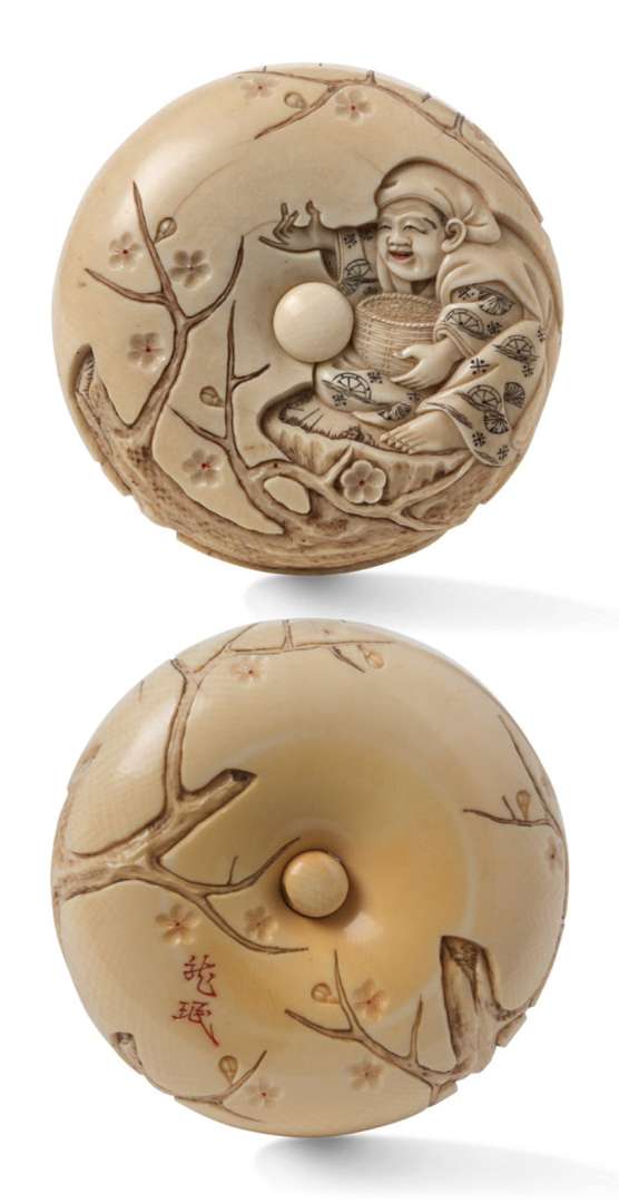 XVIIe siècle, et illustre aussi bien les rapports étroits de l'art chinois et japonais, que les échanges commerciaux réalisés, comme pour l'ivoire en provenance de Chine. Un luxe pour la fabrication, notamment de pièces uniques remarquables pour leur grande finesse, et que les artisans de netsuke réservaient aux plus importantes commandes japonaises. L'âge d'or des netsuke est considéré comme la période
