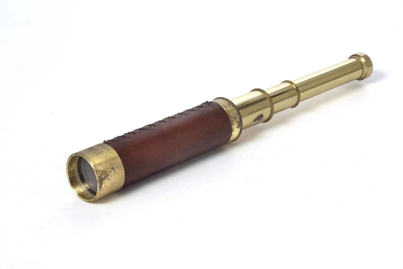 Longue vue à quatre tirants en laiton gainé de cuir rouge