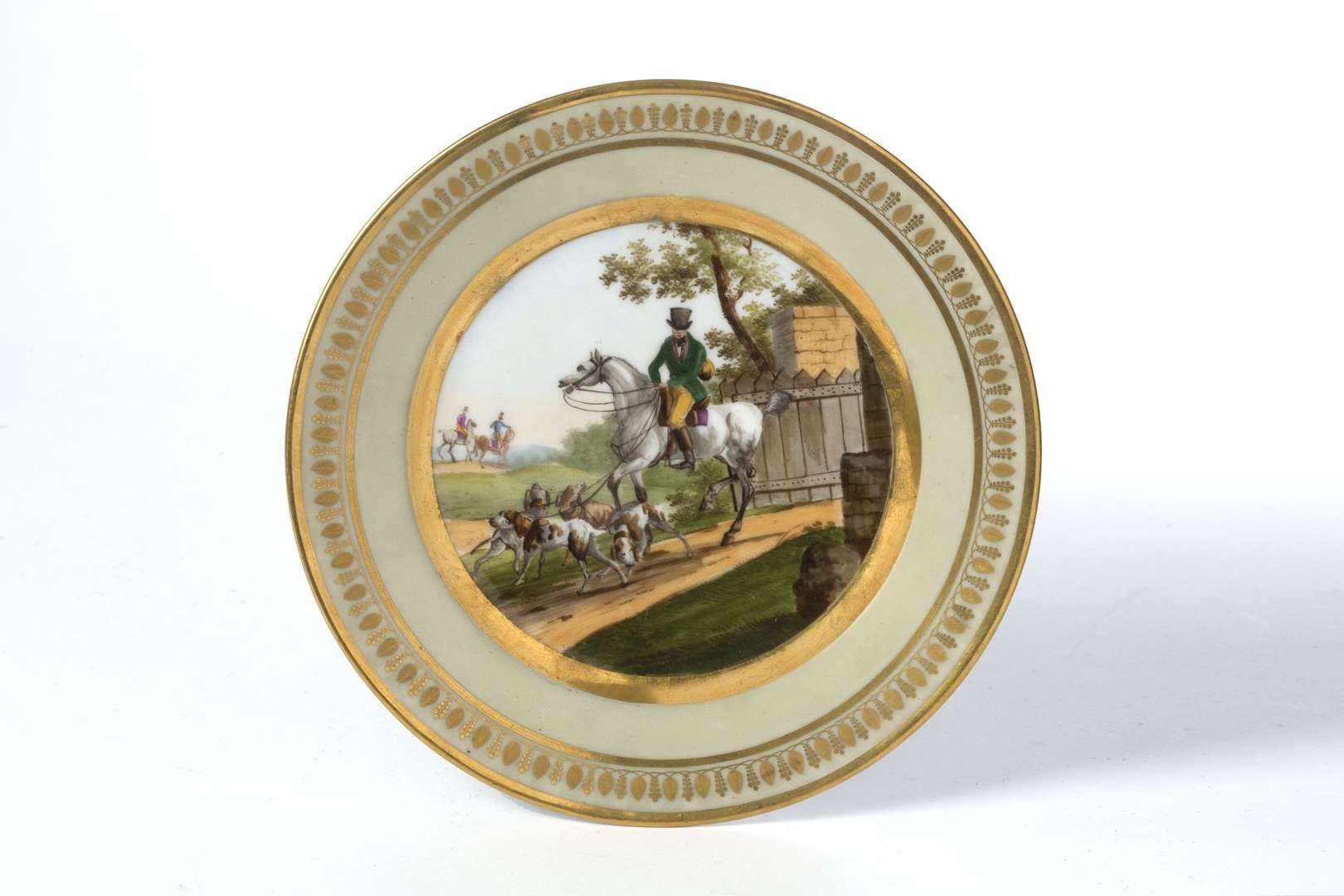 PARIS, Assiette en porcelaine à décor polychrome d'une chasse à courre