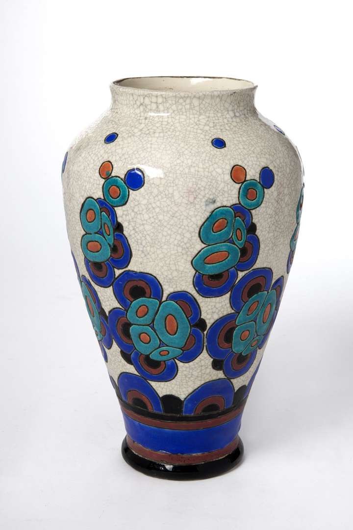 Vase balustre en faïence à décor floral émaillé polychrome