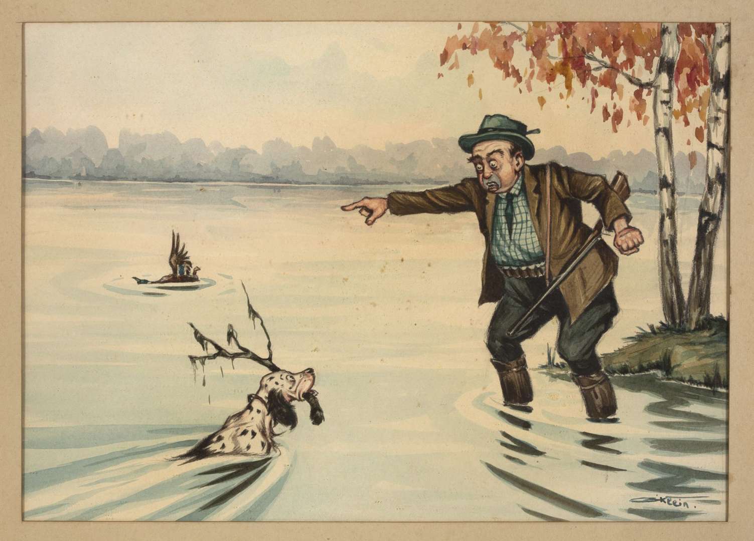 Suite de trois scènes humoristiques sur le thème de la chasse