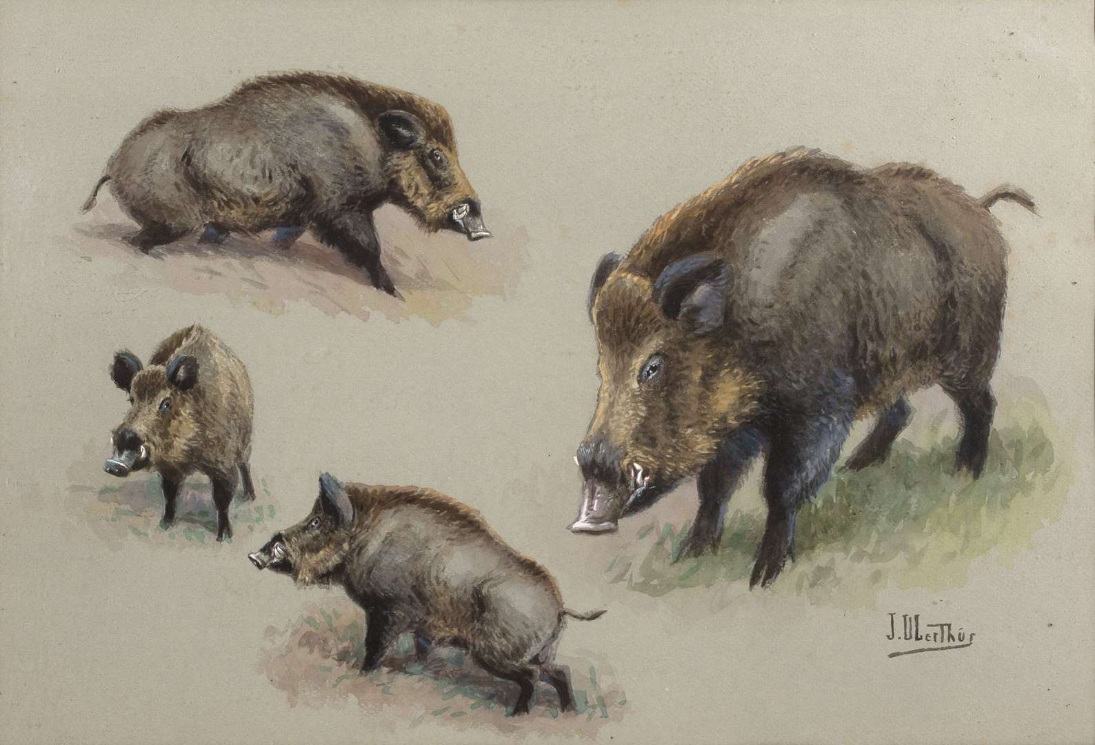Aquarelle sur papier teinté bleu, signée en bas à droite
