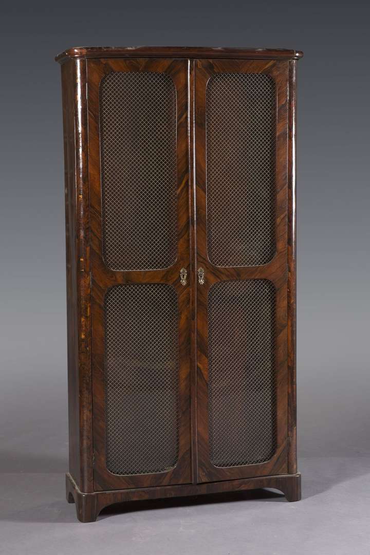 Armoire formant bibliothèque en placage de palissandre ouvrant à deux portes grillagées