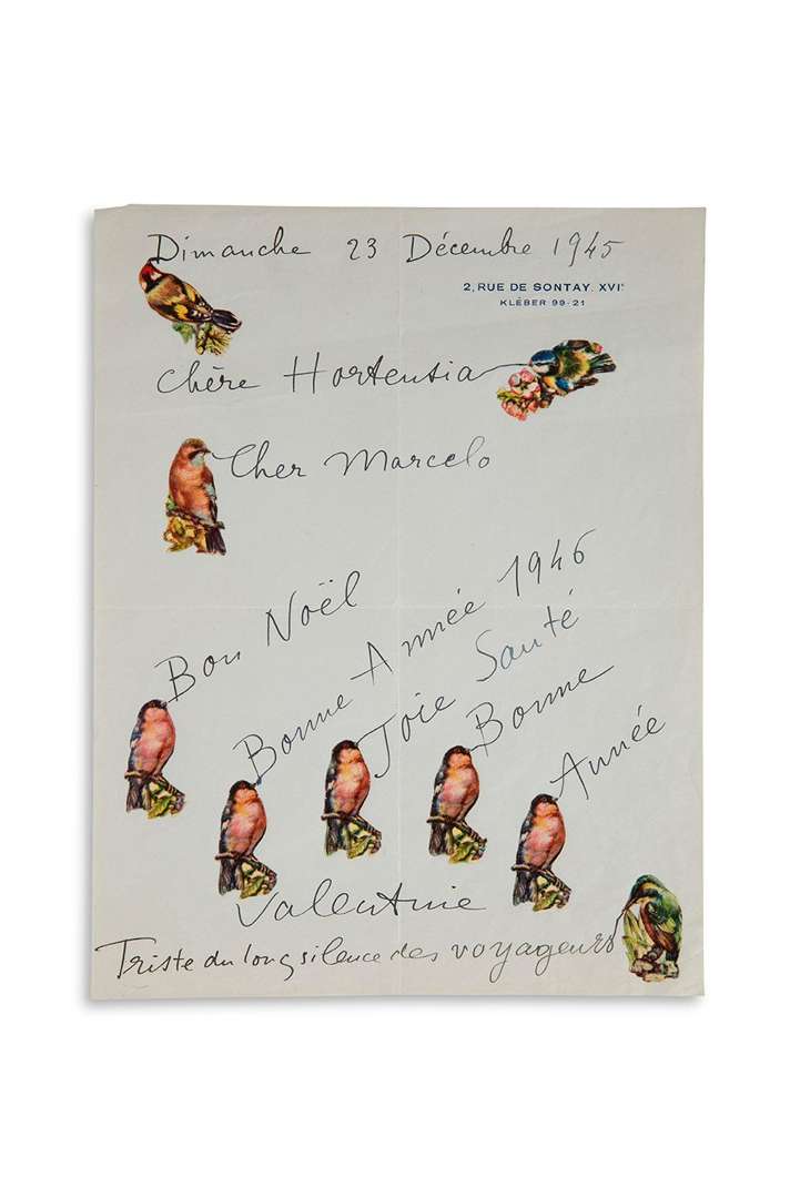L.A.S. «Valentine» avec COLLAGES, 23 décembre 1945, à Marcelo et Hortensia ANCHORENA | 1 page in-4 à son adresse 2, rue de Sontay.