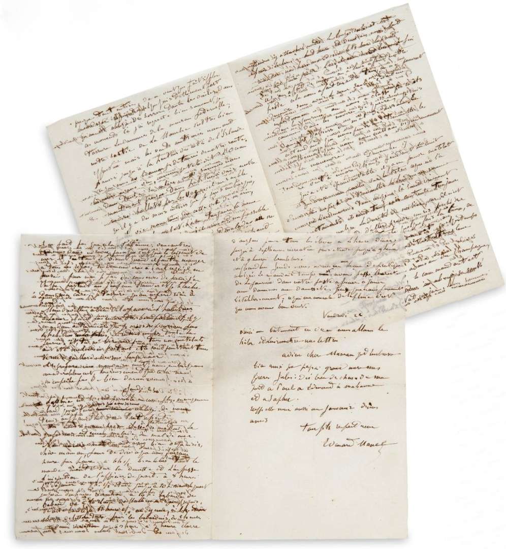 L.A.S. «Edouard Manet», «à bord du Hanovre et Guadeloupe» 15-22 décembre [1848], à SA MÈRE | 7 pages in-8 sur papier fin.