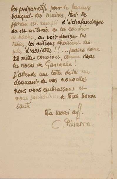 Belle lettre inédite de Paris à sa femme, au moment du Banquet des Maires.