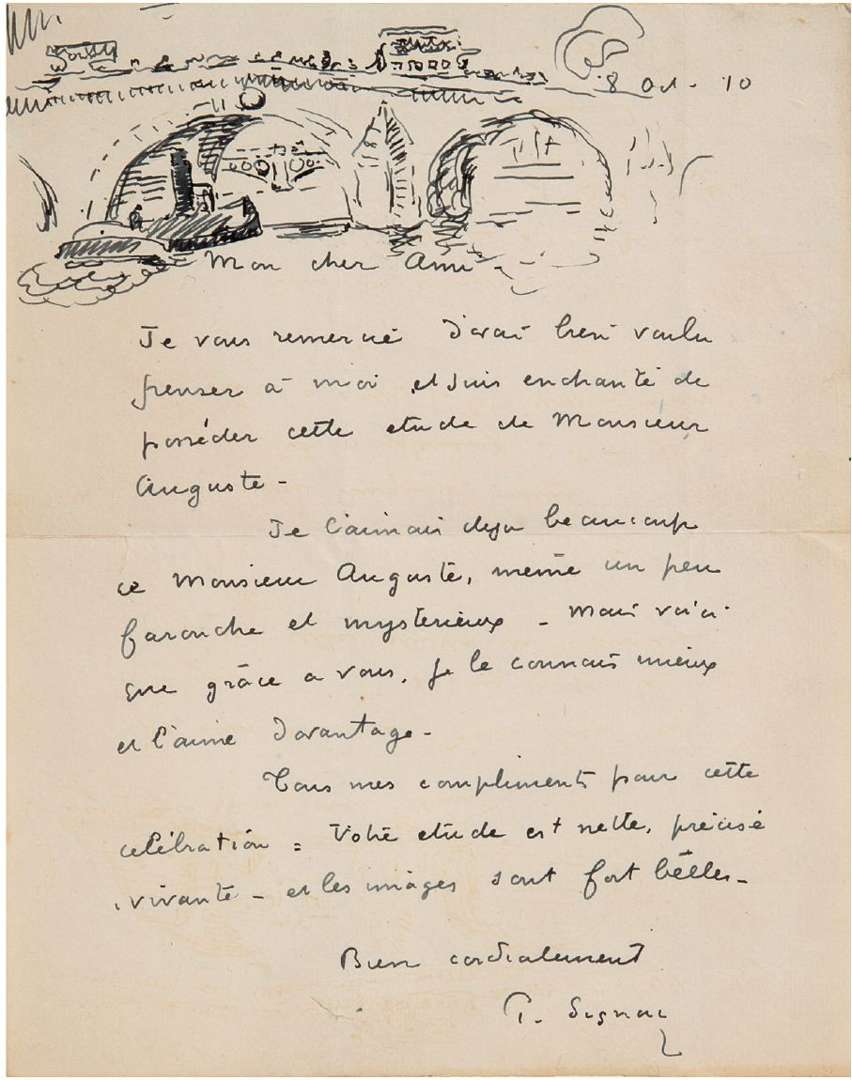 Signac remercie son correspondant de son «étude sur Monsieur