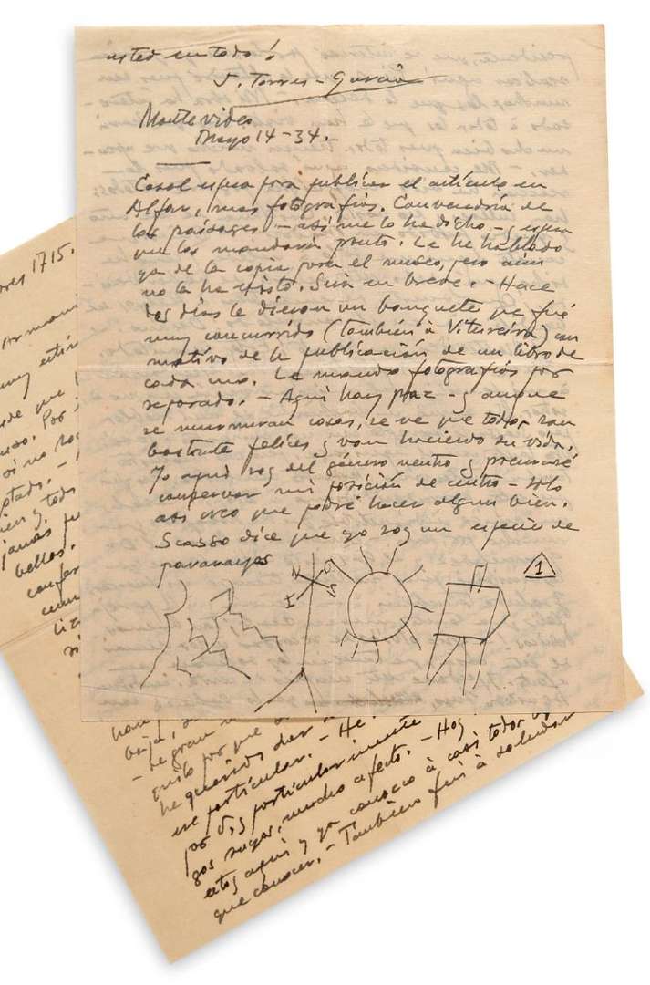 L.A.S. «J. Torres-Garcia» avec DESSIN, Montevideo 14 mai 1934, à Armando VASSEUR à Madrid | 3 pages in-4 | en espagnol.
