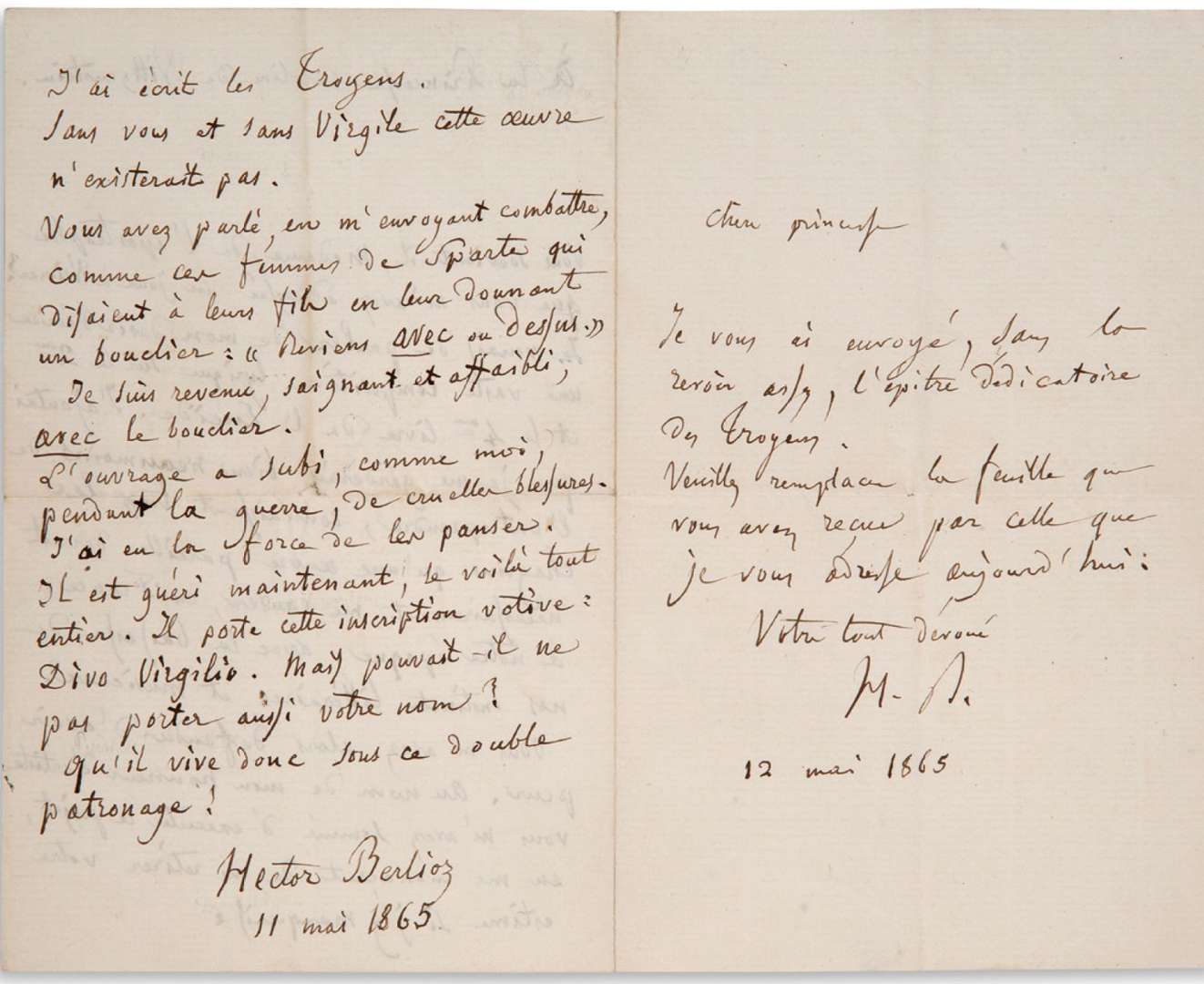 L.A.S. «Hector Berlioz», 11-12 mai 1865, à la Princesse Caroline de SAYN-WITTGENSTEIN | 3 pages in-8 d'un bifeuillet.