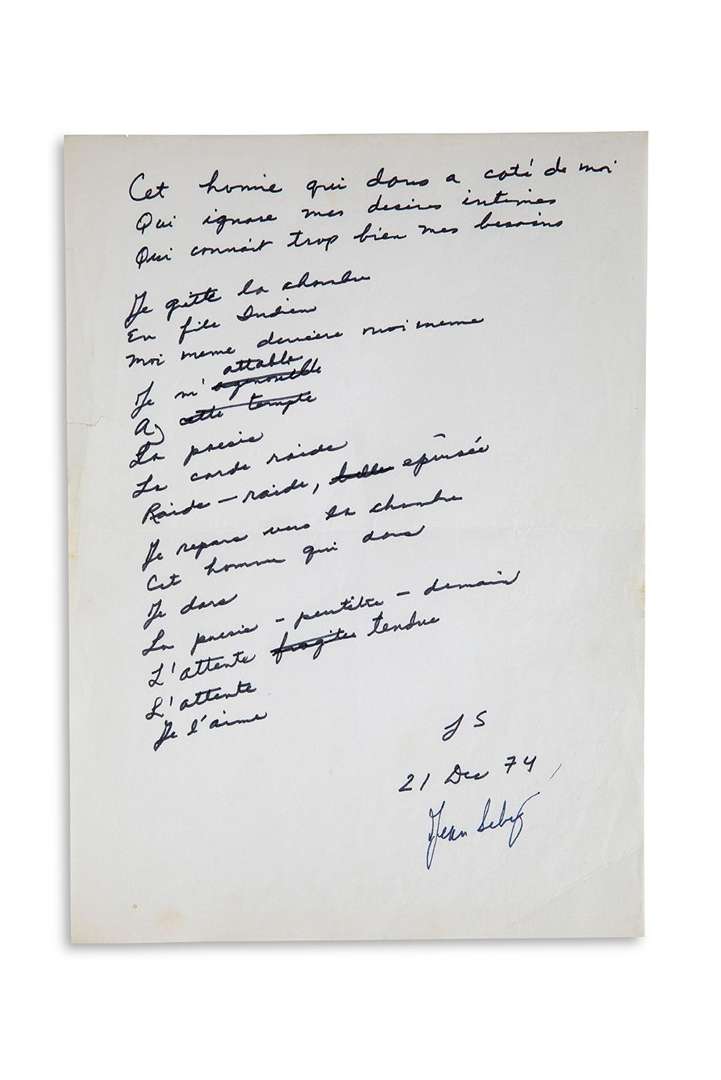 POÈME autographe signé «J S» et «Jean Seberg», 21 décembre 1974 | 1 page in-4 au feutre noir.